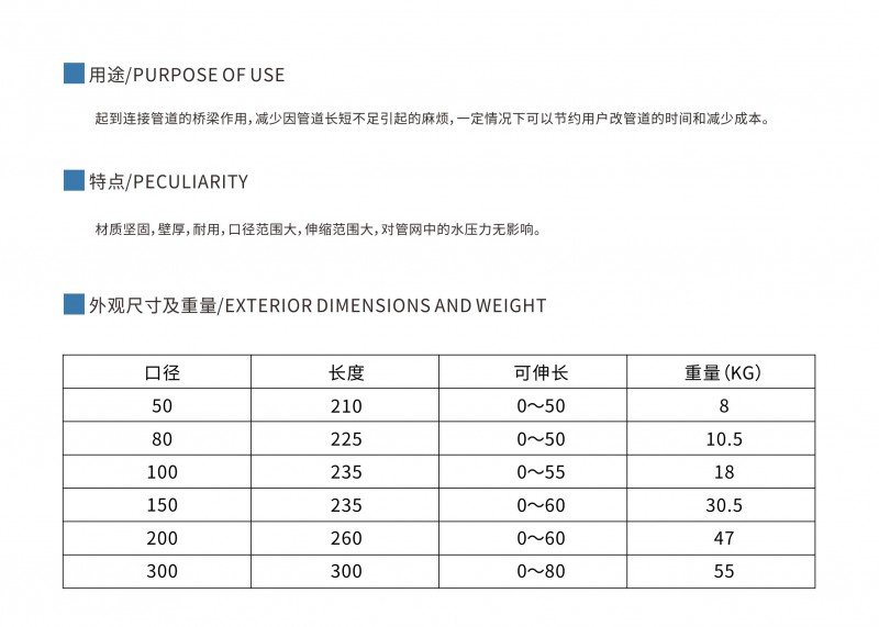 起到连接管道的桥梁作用,减少因管道长短不足引起的麻烦,一定情况下可以节约用户改管道的时间和减少成本。