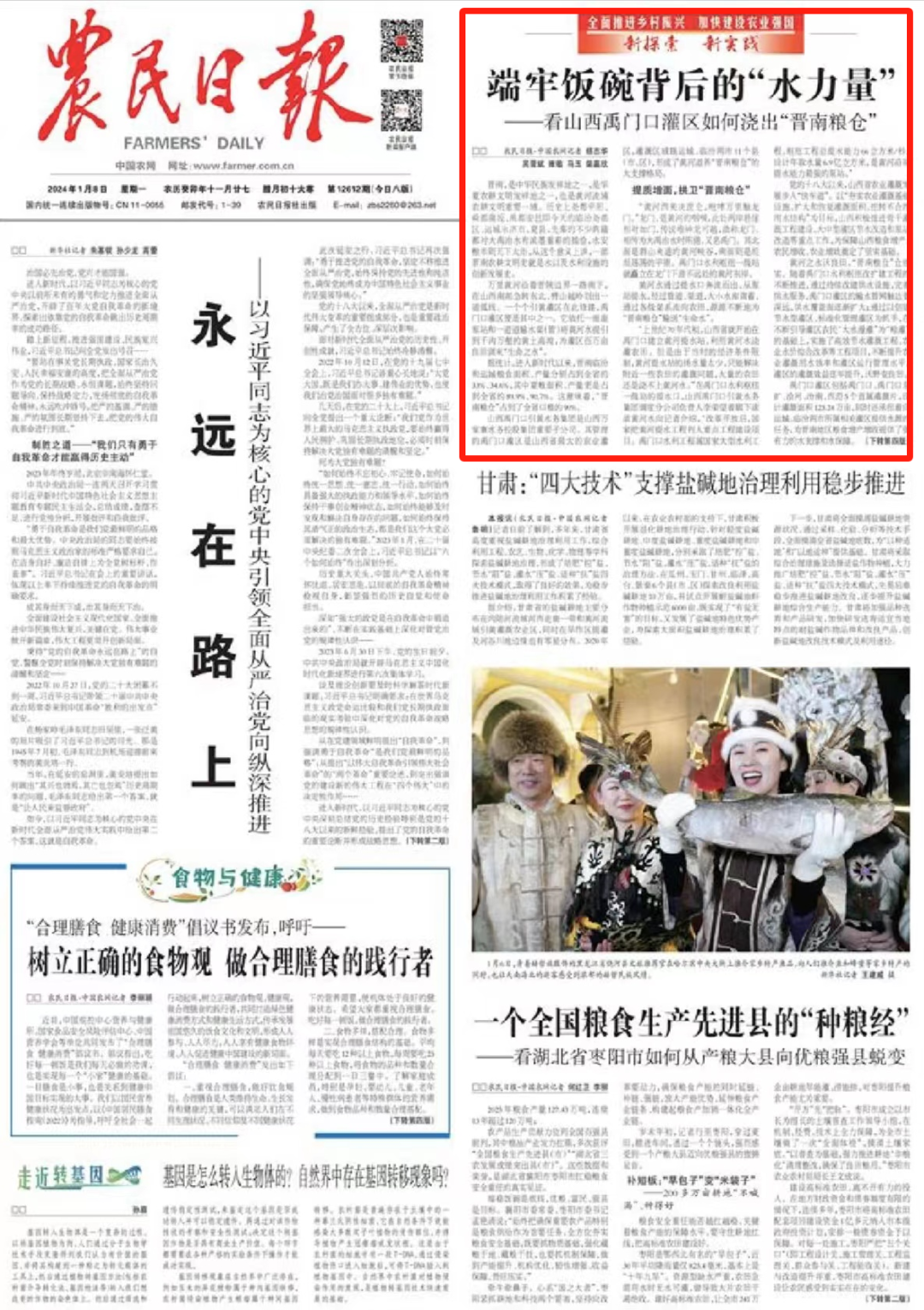 “在端稳‘中国饭碗’的路上,做好禹门口担当、发挥国企力量,作好山西贡献是每个禹门口人的愿景和使命。”山西禹门口引黄水务集团有限公司党委书记、董事长李效敏说。