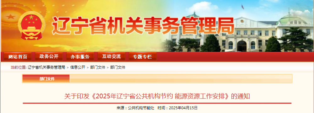 关于印发《2025年辽宁省公共机构节约能源资源工作安排》的通知