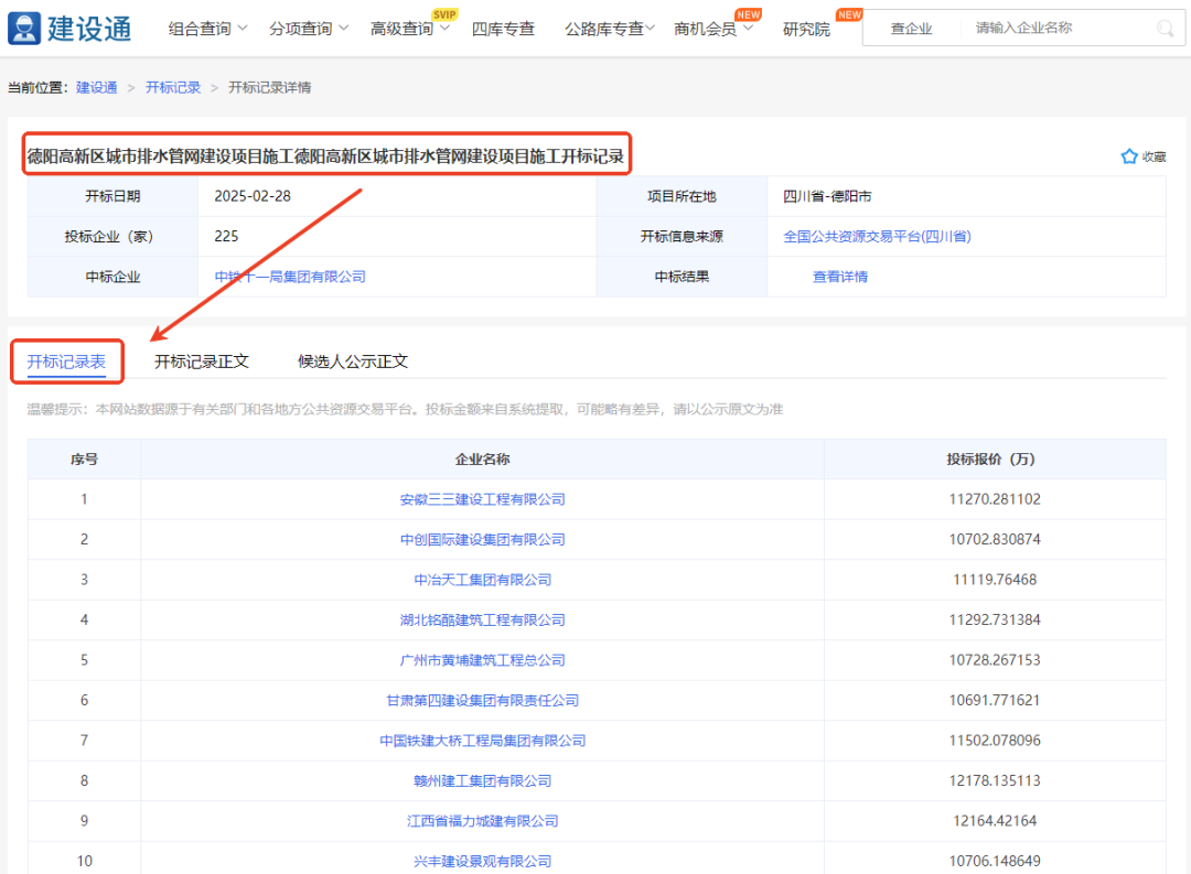 我在建设通上查了一下开标记录,具体参与的企业和报价给大家看一下: