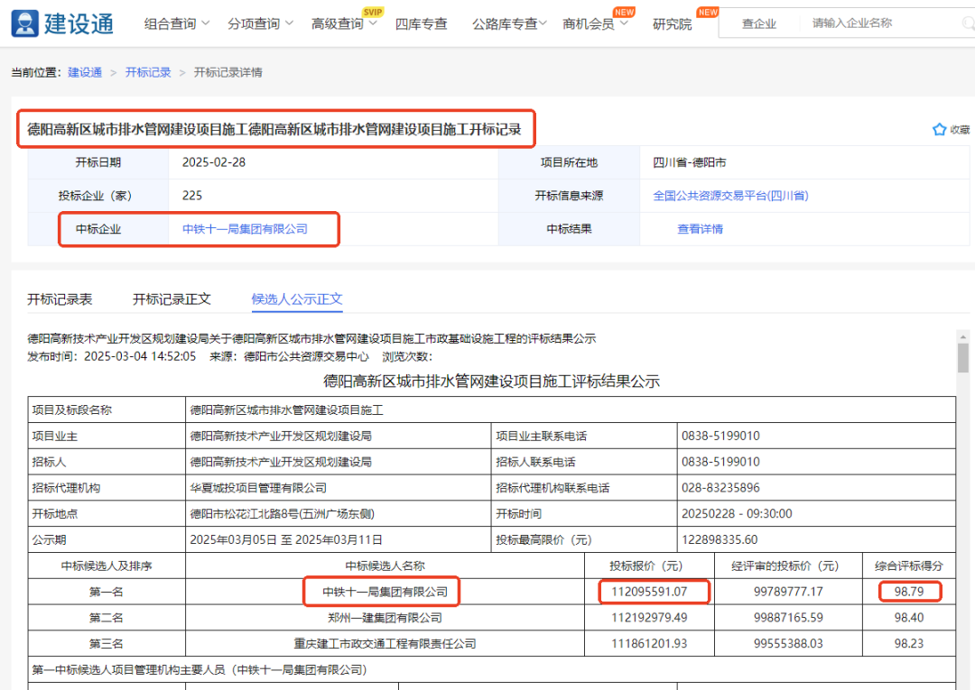 今天在建设通上查询到,已经到公示中标候选人阶段了,前三名分别为中铁十一局、郑州一建集团、重庆建工市政交通公司。