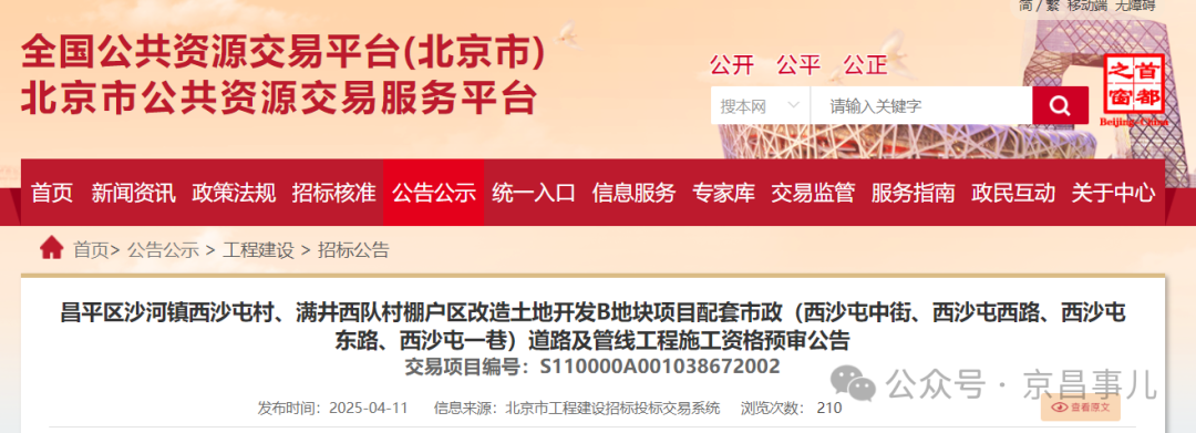 2.4 本工程的招标范围 昌平区沙河镇西沙屯村、满井西队村棚户区改造土地开发B地块项目配套市政道路及管线工程的道路工程、绿化工程、交通工程(划线)、照明工程、给水工程、污水工程、再生水工程、雨水工程等设计图纸显示的全部工程。