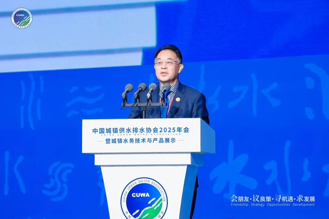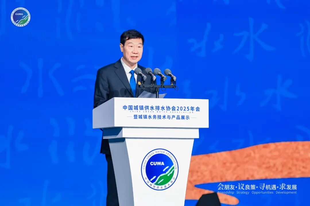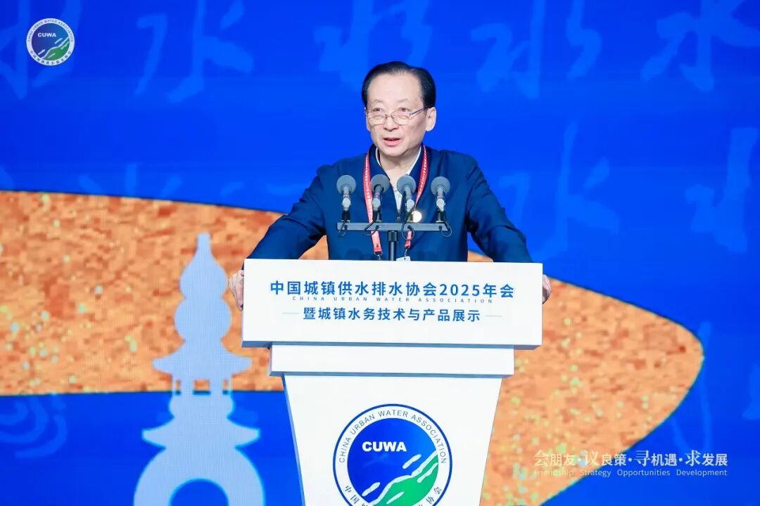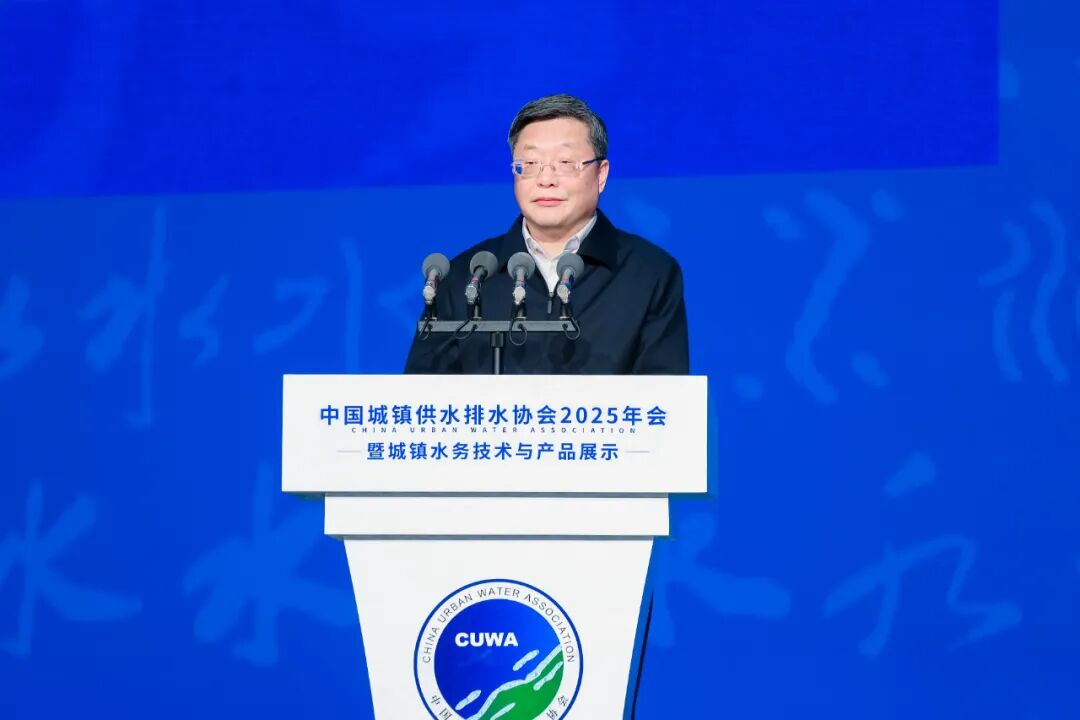 2025年4月18日,中国水协2025年会综合大会在杭州召开,来自全国31个省、自治区、直辖市以及香港、澳门特区共有近万名同行共聚一堂。中国水协会长章林伟先生,住房和城乡建设部原总经济师、办公厅主任、中国水协顾问委员会主任李秉仁先生,住房和城乡建设部城市建设司司长胡子健先生,住房和城乡建设部村镇建设司司长牛彰彬先生委托代表鞠宇平处长,浙江省住房和城乡建设厅党组成员、副厅长张清云先生,浙江省住房和城乡建设厅二级巡视员谢永明先生,杭州市委原副书记、宁波市政协原党组书记、主席杨戌标先生,浙江省杭州市人民政府副市长丁狄刚先生,杭州市城乡建设委员会党组书记、主任董天乐先生,杭州市综合行政执法局局长、杭州市城市管理局局长林炳达先生,杭州市城市建设投资集团有限公司党委书记、董事长李红良先生,第十四届全国政协委员、上海凯泉泵业(集团)有限公司董事长兼总裁林凯文先生,非洲水协副主席弗朗索瓦·奥利维尔·戈索(FRANCOIS OLIVIER GOSSO)先生出席了会议。出席大会的还有中国水协10位副会长、5位中国水协顾问委员会高级顾问,7位全国工程勘察设计大师,22位中国水协科技发展战略咨询委员会专家委员。本届年会适逢“十四五”收官与“十五五”启程关键节点,聚焦城镇饮用水安全、排水机制改革、智慧水务、绿色低碳发展、海绵城市等核心议题,旨在推动新质生产力培育和行业高质量发展。会议汇聚政府领导、水务企事业高管与技术专家、国际相关水务专家等300余位专家分享前沿成果。开幕式环节由中国水协高伟副秘书长主持。浙江省住房和城乡建设厅张清云副厅长、杭州市人民政府副市长丁狄刚先生、中国水协副会长刘锁祥先生、住房和城乡建设部城市建设司胡子健司长先后在会上致辞。浙江省住房和城乡建设厅张清云副厅长