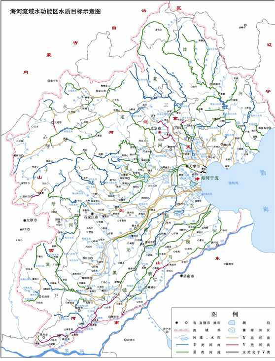 海河流域主要由海河、滦河和徒骇马颊河三大水系组成,其中海河水系包括蓟运河、潮白河、北运河、永定河、大清河、子牙河、漳卫河、黑龙港及运东地区等河系。流域主要包括京、津、冀及晋、豫、鲁、蒙、辽的部分地区,总面积32.06万平方公里,面积1000平方公里以上河流共59条。流域总人口约1.5亿,占全国人口总数的11%,国内生产总值约占全国的13%,耕地1.4亿亩,是我国的政治文化中心和经济发达地区,也是国家重要的粮食基地、能源基地。海河流域西部为黄土高原和太行山区,北部为蒙古高原和燕山山区,东部和东南部为平原,总体地势西北高、东南低,高原和山地面积占59%,平原面积占41%。
