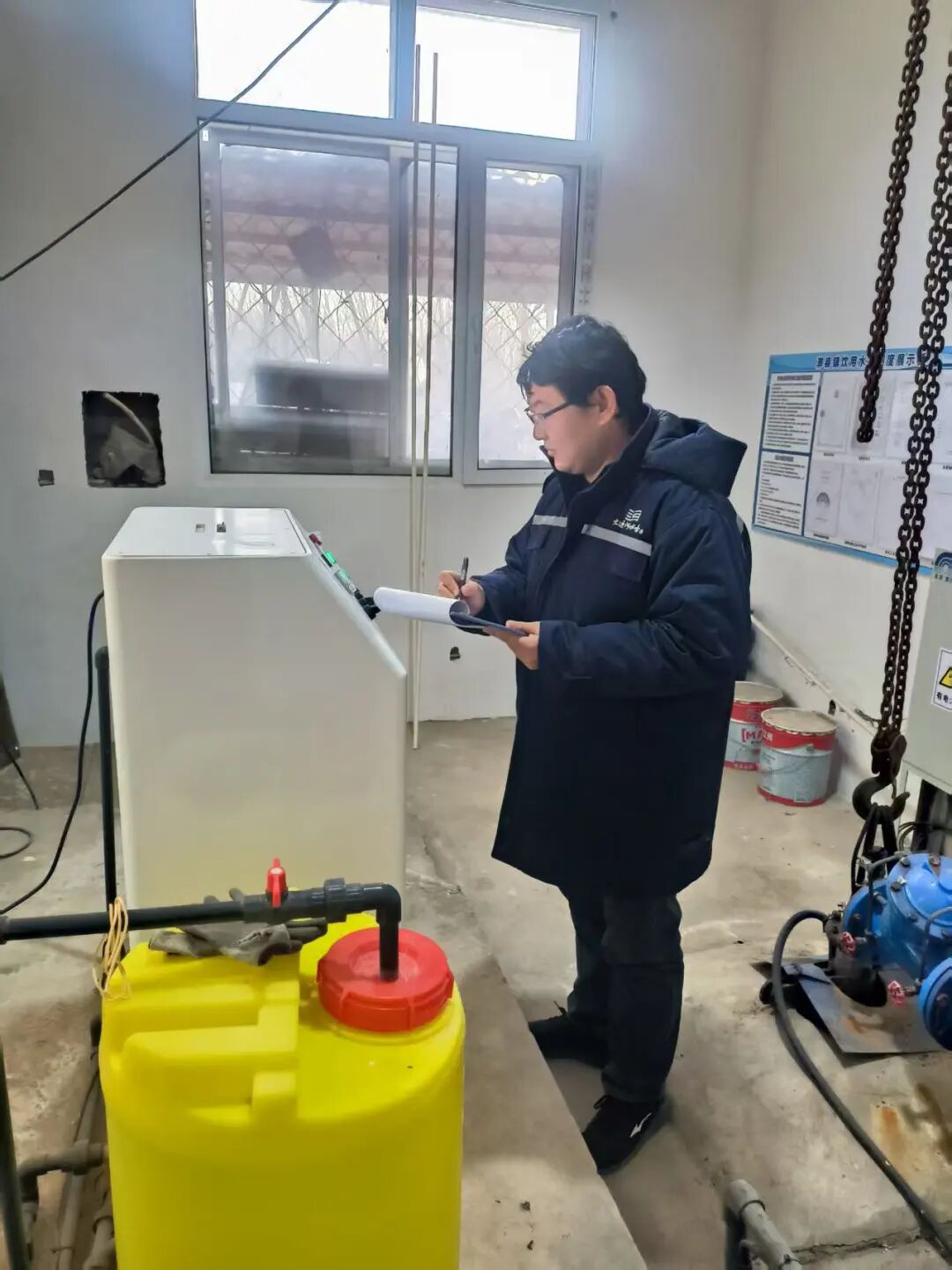 早七点半,于家务乡崔各庄村供水站披一层曦光立在冷峭深冬,北京永乐供水有限公司职工宛建旭打开水房门,清理卫生,查看药剂,检查设备,然后消毒、放水、装袋——水质取样一气呵成,接着马不停蹄赶往下一个村子。这些分装好的水样要在4小时内被送到大运河(北京)供水有限公司水质化验中心进行检测。如是工作,周而复始,以保万家用水安全。