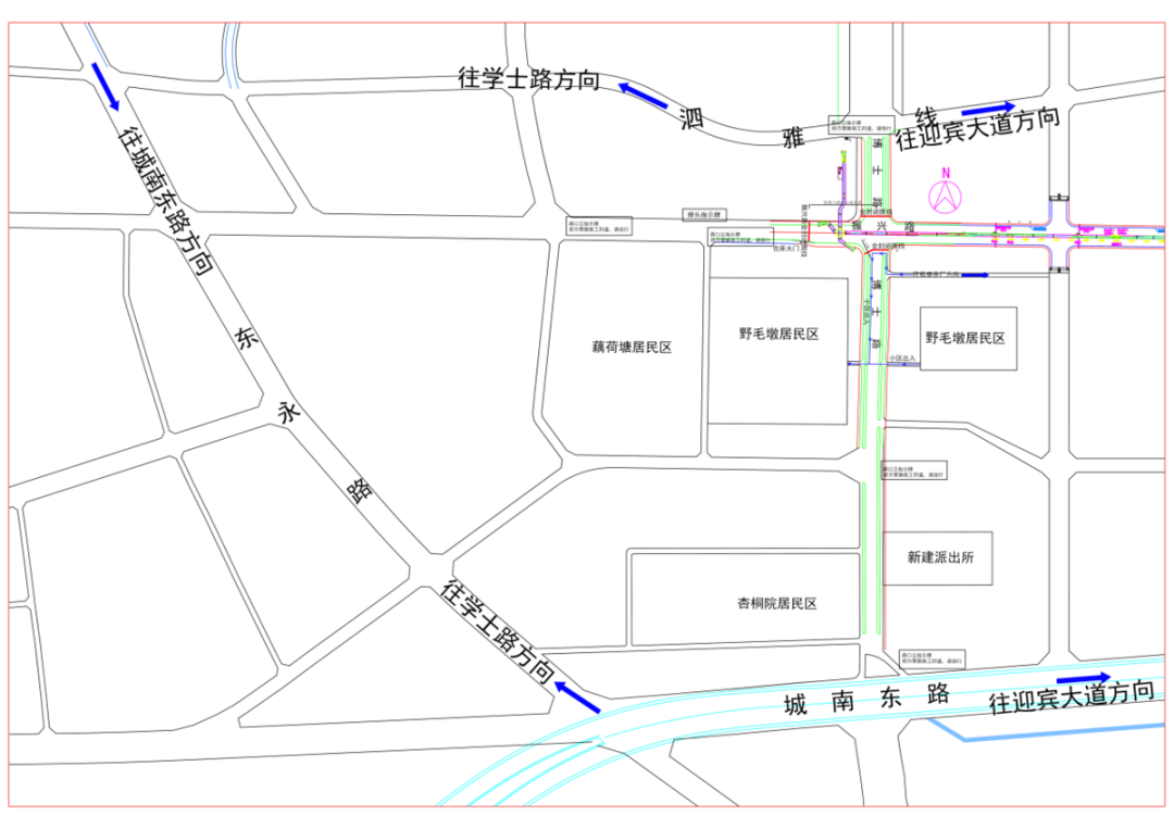 因项目施工需要,根据《中华人民共和国道路交通安全法》等相关规定,相关部门将对博士路与振兴路交叉口路段实行封闭施工。封闭时间为4月15日至6月30日。具体封闭及绕行方案如下:博士路与振兴路交叉口西侧振兴路西向东车道封闭,过往车辆可绕行东永路、城南东路、泗雅线方向;交叉口南侧博士路南向北车道封闭,可绕行城南东路、东永路、迎宾大道方向;交叉口北侧博士路北向南车道封闭,可绕行环城北路、迎宾大道、泗雅线、东永路方向。