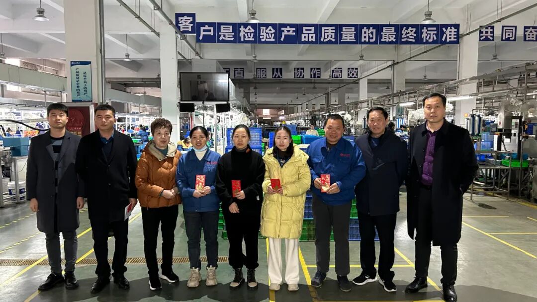 2月3日,三川集团党委委员、监事长、工会主席童保华、三川集团总顾问胡美娥一行来到三川智慧鹰潭本部开展慰问活动,三川智慧水计量制造中心负责人、三川集团工会副主席员刚强、三川集团办公室副主任程华伟等领导陪同慰问。