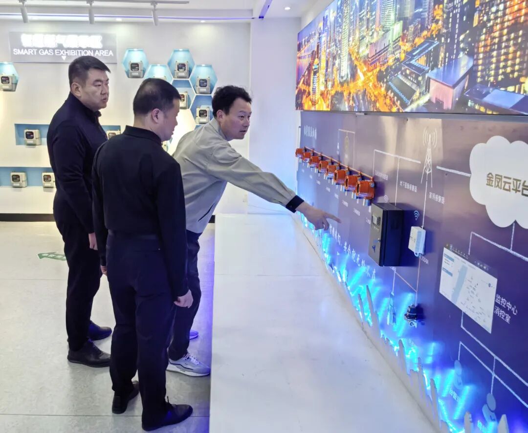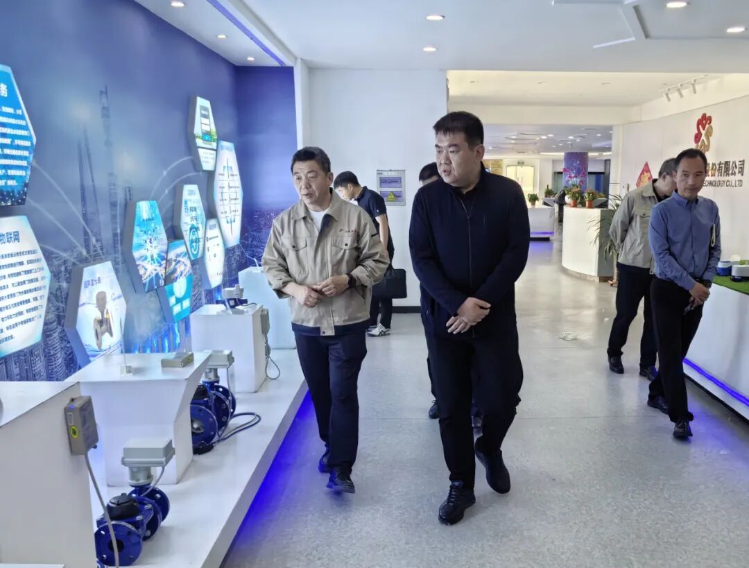 集团董事、技术研发中心主任、金凤来仪董事长唐广勇结合此次无极县重点考察智慧水务需求,系统阐述了物联网水表及超声波水表终端的核心技术优势、产品性能、生产工艺、创新技术特点,并重点介绍了基于自主研发的“芯-端-管-云-工-用-服”一体化智慧水务全链解决方案。