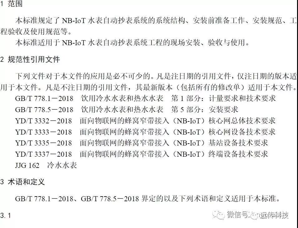 11月11日消息,中国计量协会水表工作委员会组织正式发布由中国电信股份有限公司联合44家企业(有水表企业、水务公司、网络运营商、通信设备商以及计量技术机构等)共同起草的水表行业团体标准T/CMA SB 040-2019《NB-IoT水表自动抄表系统现场安装、验收与使用技术指南》,将于2020年3月1日起实施。